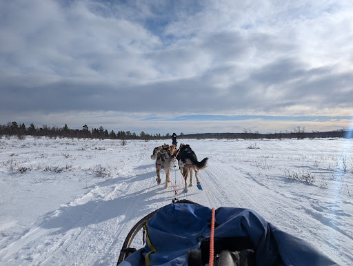 The gear provided was top-notch. We were two people in each sled, which gave us a genuine musher experience. The sled was comfortable and warm for the person not driving and was very clean. The overalls, boots, accessories, and headlamps kept us warm during the ride and added to the overall experience.